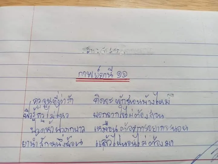 เด็กนักเรียน แต่งกาพย์ยานี 11 พออาจารย์ตรวจเสร็จ อาจต้องเรียนซ้ำชั้นอีก 1 ปี