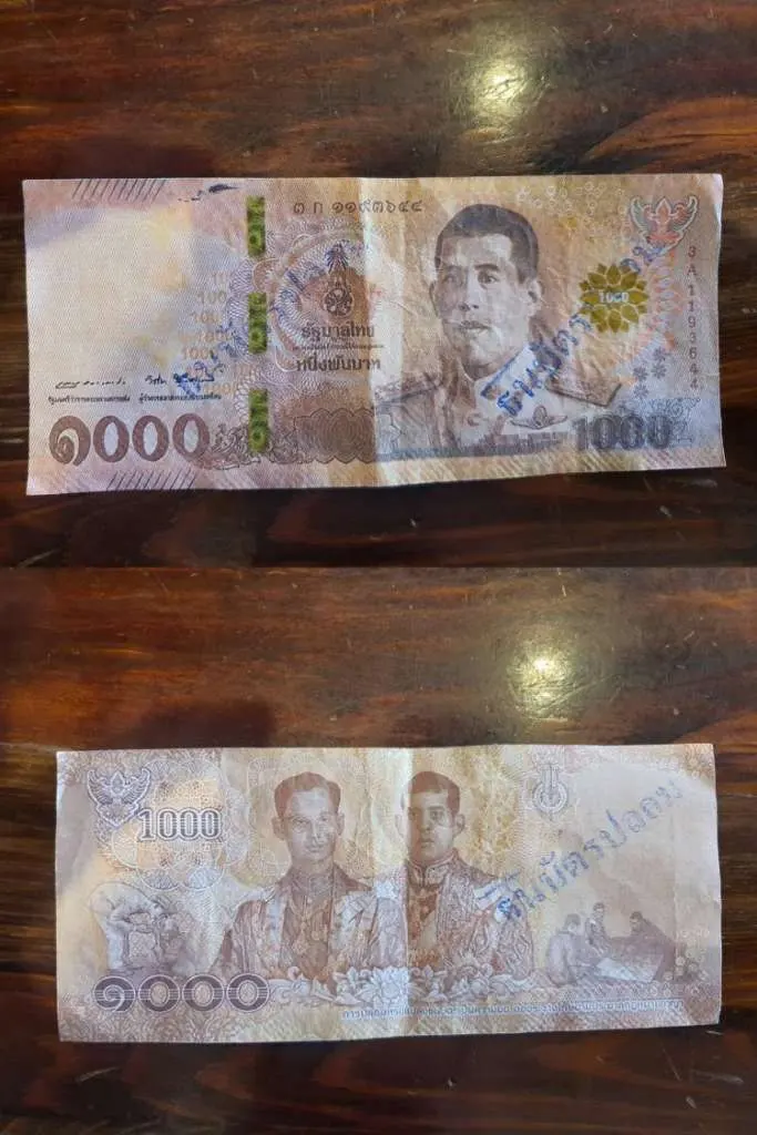 เมื่อนำเงินไปเข้าธนาคารกลับได้รับแจ้งว่ามีธนบัตร 1,000 บาท ปลอมอยู่ใบหนึ่ง และเจ้าหน้าที่ธนาคารก็ปั๊มธนบัตรว่าปลอมและคืนมาให้ตนเพื่อนำไปแจ้งความ
