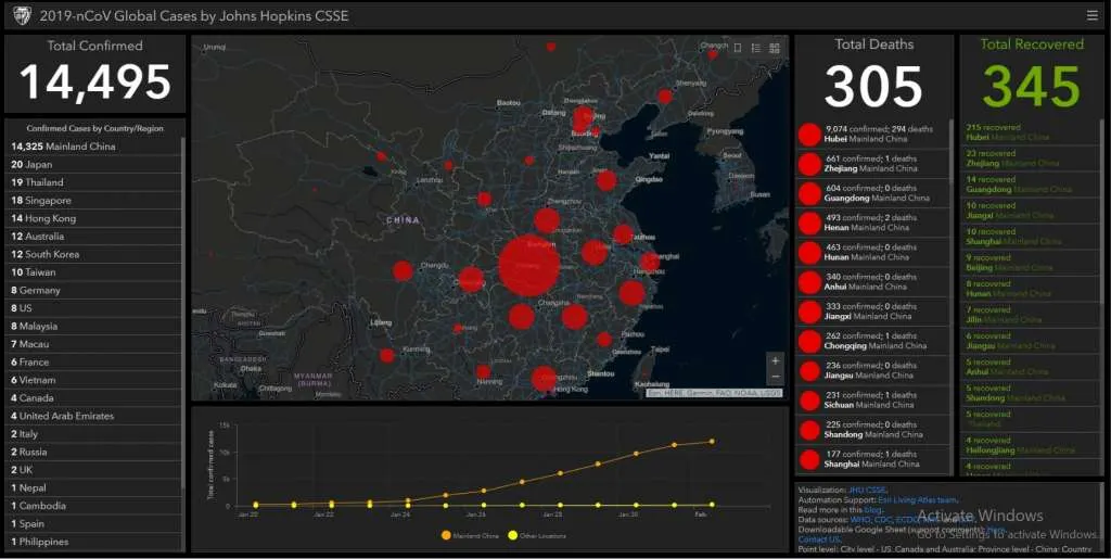 จนถึงตอนนี้มีข้อมูล ณ วันที่ 2 ก.พ. ซึ่งมีจำนวนผู้ป่วยสะสมทั่วโลกมีถึง 14,554 คน ซึ่งเป็นจีนแผ่นดินใหญ่ 14,495 คน นอกจีน 174 คน และมีผู้เสียชีวิตแล้ว 305 ราย
