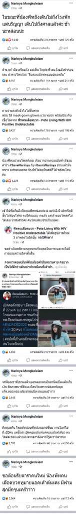 และยังมีตามมาอีกหลายโพสต์เช่น เข้าไปให้กำลังใจคุณพีทหน่อยค่ะ ส่วนกำลังใจสำหรับดิชั้นไม่ต้องให้ค่ะ คนให้เยอะมากแล้ว แต่เจ้าของโพสต์ไม่ได้เลย น่าสงสารค่ะ คนไทยต้องช่วยกันนะคะ, น้องพีทอย่าลบโพสต์เลย เจ้อยากอ่านคอมเม้นท์ เจ้ชอบคำว่า #SaveNarinya กับ #teamNarinya อ่านแล้วมันพราว อย่าลบเลยนะ จ้างให้ไม่ลบโพสต์ก็ได้ พร้อมโอนค่ะ, ตำรวจกำลังจะรับแจ้ง แต่เห็น Topic ที่จะแจ้งแล้วขำก่อนเลย ขำตรงไหนรู้มะ “รับสอน…สดแบบปลอดภัย”, ในขณะที่น้องพีทยังเดินไม่ถึงโรงพัก แต่นริญญา เดินไปถึงศาลแล้วค่ะ ช้านะหล่อนน่ะ และข้อความล่าสุดที่ว่า “ล่าสุดไปฟ้อง UN แล้ว เอ็นดูเขานะ เป็นอะไร๊!! 5555555555555555555555” ในขณะที่ทางพีทยังไม่ได้มีความเคลื่อนไหวใดๆ เดียวกับเรื่องนี้ต่อ