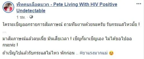 ทั้งนี้เมื่อย้อนกลับไปดูคลิปที่พีท เคยไปสัมภาษณ์ รายการตีสิบ ก็ถูกลบออกทันที ทางพีทก็ไม่รอช้าเคลื่อนไหวแบบ ไม่สนคำวิจารณ์ ระบุว่า ใครจะเชิญออกรายการสัมภาษณ์ ถามทีมงานด้วยนะครับ รับกระแสไหวมั้ย ! …มาสัมภาษณ์แล้วลบเนี่ย มันเสียเวลา ! เชิญก็มาเชิญเอง ไม่ได้ขอไปออกนะห่ะ !ถ้าเชิญไปแล้วรับกระแสไม่ไหว พักก่อน .. #ยาแรงมากแม่