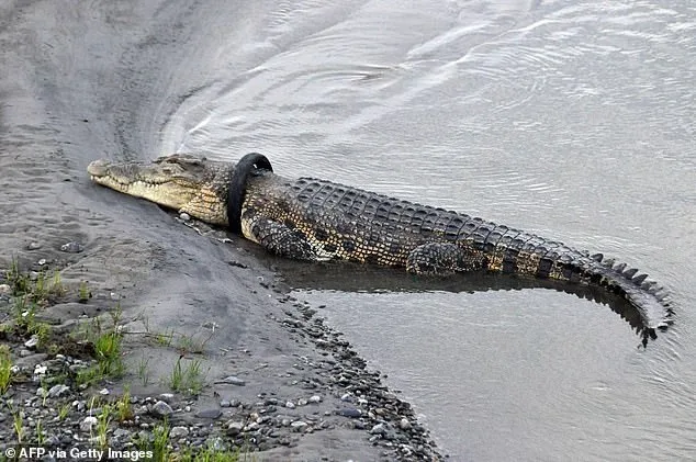 รายงานระบุว่า จระเข้ที่ใกล้สูญพันธุ์ตัวหนึ่งได้รอดพ้นจาเหตุแผ่นดินไหวและสึนามิในปี 2561 แต่มันก็ยังหนีไม่พ้นอุปสรรคในชีวิตที่คล้องคอมันอยู่ และไม่มีทีท่าว่าจะหลุดออกไปโดยง่าย