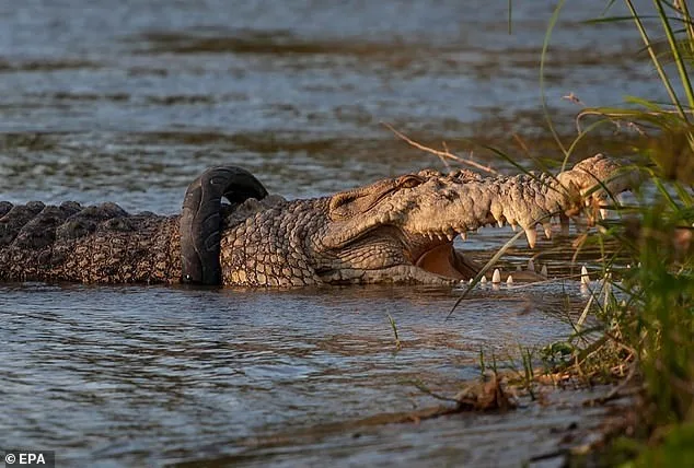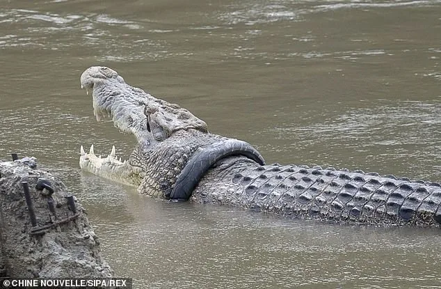 ประกาศตามหาผู้กล้าหาญ ใครช่วยเอายางรถมอเตอร์ไซค์ออกจากคอจระเข้ยักษ์ได้ มีรางวัลก้อนโตให้ด่วน