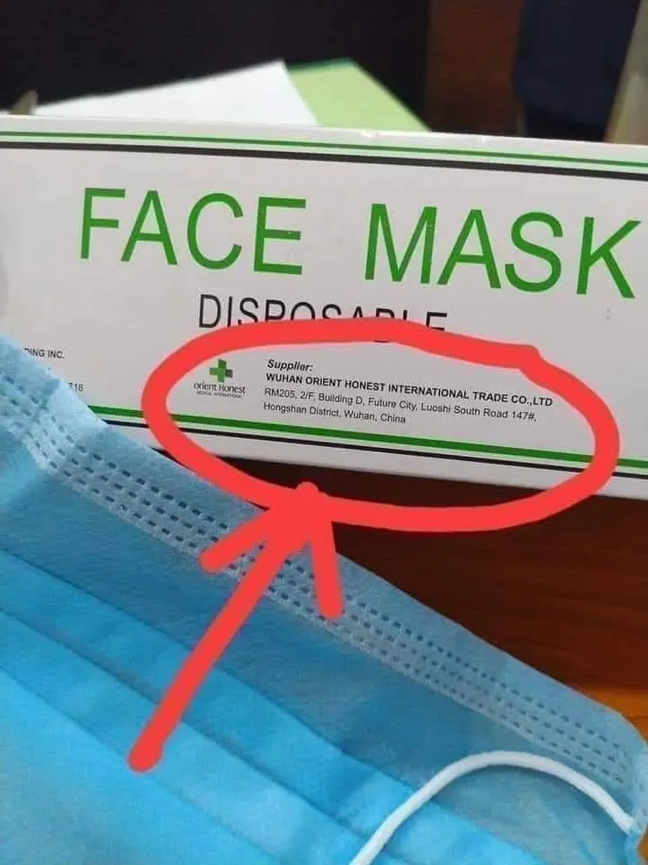 เรียกได้ว่าเป็นเรื่องราวตลกร้ายของสาวผู้ใช้เฟซบุ๊กรายหนึ่ง หลังเธอได้ซื้อ “หน้ากากอนามัย” เพื่อป้องกันการแพร่เชื้อโรคเข้าสู่ร่างกายมาใส่ แต่พอพลิกดูข้อมูลต่างๆที่อยู่ข้างกล่องถึงกับต้องตกใจกับแหล่งผลิตของสินค้าที่เธอซื้อมา