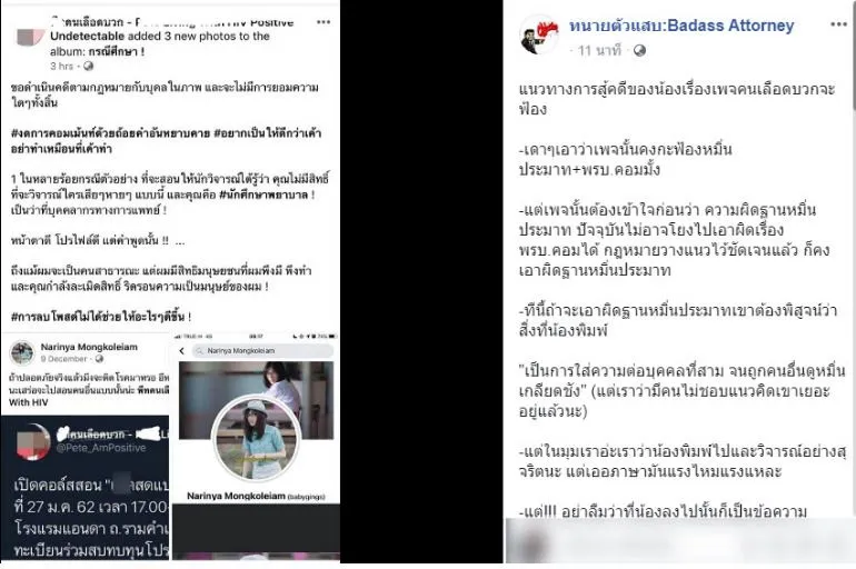 ขอบคุณเฟซบุ๊ก Narinya Mongkoleiam , พีท คนเลือดบวก และทนายตัวแสบ