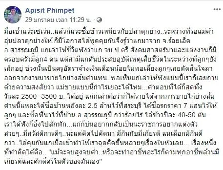 เมื่อวันที่ 29 มกราคม 2563 ผู้ใช้เฟซบุ๊กชื่อว่า Apisit Phimpet ได้มีการโพสต์รูปภาพพร้อมทั้งระบุข้อความเอาไว้ว่า…