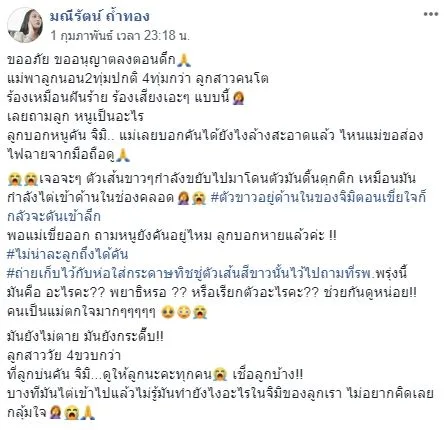 เมื่อวันที่ 1 กุมภาพันธ์ 2563 ผู้ใช้เฟซบุ๊กชื่อว่า มณีรัตน์ ถ้ำทอง ได้มีการโพสต์รูปภาพไปยังกลุ่ม HerKid รวมพลคนเห่อลูก พร้อมทั้งระบุข้อความ…