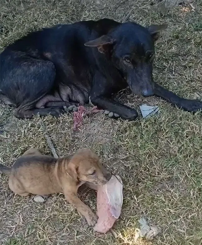 ด้วยความเป็นแม่ นางจึงต้องไปหาอาหารให้ลูกน้อยทั้งเจ็ดตัวกิน แม้ว่าตัวเองจะหิวเช่นกัน แม่หมาก็ยอมอด เพื่อให้ลูกน้อย ๆ ได้อิ่ม เจ้าลูกหมาตัวน้อยก็กัดกินก้อนเนื้ออย่างหิวกระหาย ต่อมาชายหนุ่มจึงได้โพสต์คลิปวิดีโอเพิ่มเติม ว่าได้รับลูกหมาทั้ง 7 ตัวมาเลี้ยงแล้ว