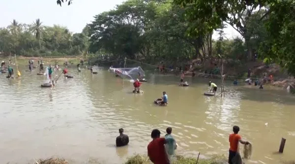 ชาวบ้านกว่า 400 คน ถึงกับร้องลั่น ลงจับปลาคลายร้อน ก่อนเจอแจ็คพอตเต็มๆ