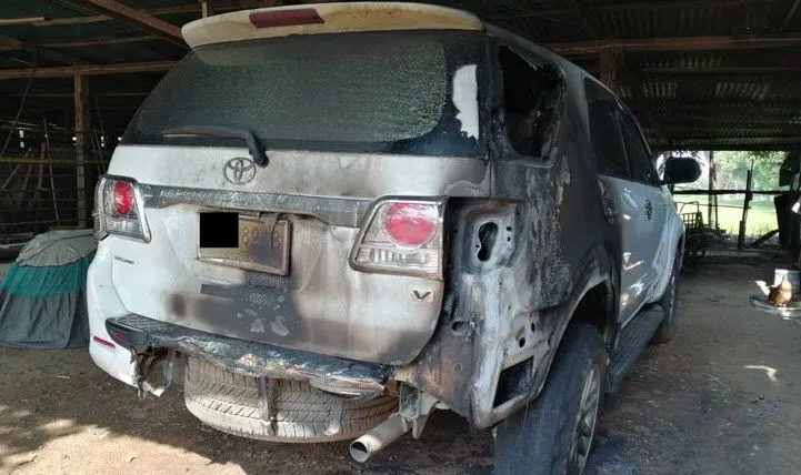 ต่อมา พล.ต.ต.สมนึก มิควาฬ ผบก.ภ.จว.กาฬสินธุ์ และ พ.ต.อ.ภูมี อีคะละ ผกก.สภ.กมลาไสย ได้เข้ามาตรวจสอบที่เกิดเหตุด้วยตนเอง โดยเจ้าหน้าที่ตำรวจยังพบขวดแก้วที่บรรจุน้ำมันวางไว้บริเวณรอบบ้าน รวมไปถึงรถยนต์ยี่ห้อโตโยต้า ฟอร์จูนเนอร์ สีขาว หมายเลขทะเบียน กจ 8218 กาฬสินธุ์ ของผู้เสียชีวิต ยังมีร่องรอยของการถูกเผารถ มีขวดแก้วที่บรรจุน้ำมันตกอยู่