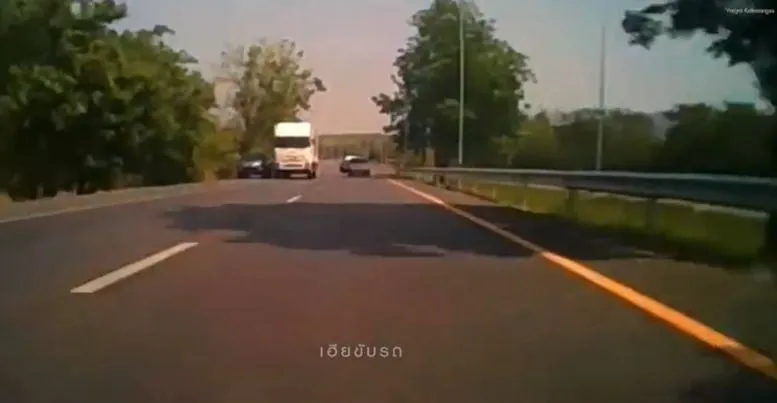 กระบะดำโชว์เหนือ แซงไหล่ทาง สุดท้ายพบจุดจบ