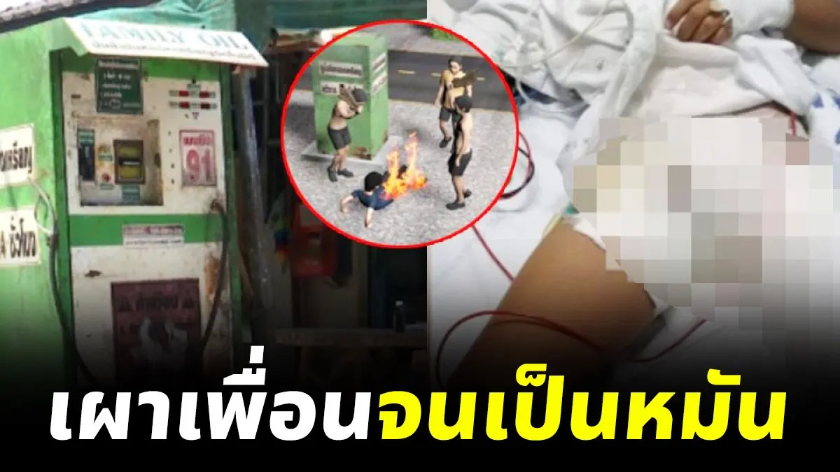 ลูกชายเล่าให้ฟังว่า นั่งเล่นลูกแก้วกับเพื่อน ๆ อยู่ที่บริเวณปั๊มน้ำมันหยอดเหรียญใกล้บ้าน แต่ถูก เด็กชาย ต้า อายุ 8 ขวบ เรียนอยู่ชั้น ป.2 เพื่อนบ้านใกล้กัน เอาเงินไปหยอดเหรียญที่ตู้น้ำมัน แล้วเอาน้ำมันมาราดใส่ลูกชายของตนเอง และจุดไฟเผา จนไฟลุกลามขึ้นมาที่ขาและอวัยวะเพศจนไหม้ คนที่เห็นเหตุการณ์ ช่วยกันถอดเสื้อและใช้ผ้าตีจนไฟดับ ก่อนพามาส่งบ้าน
