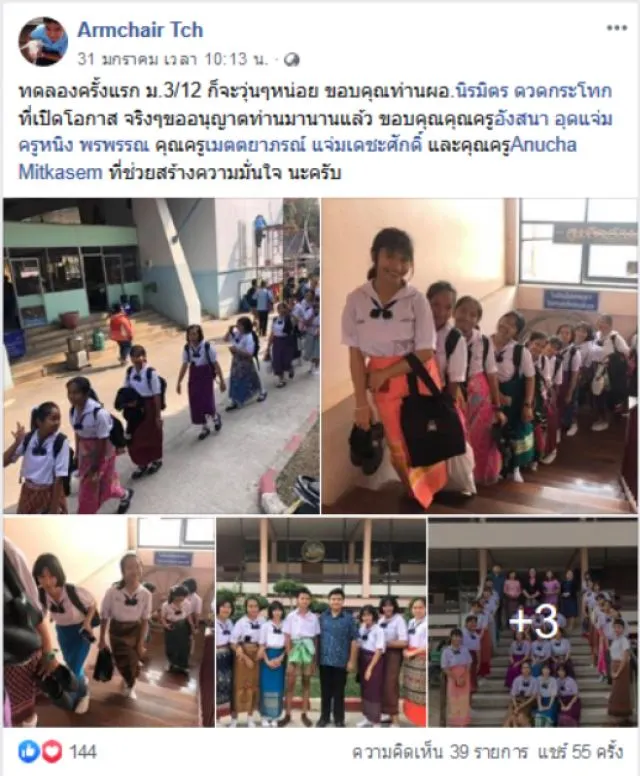 กลายเป็นอีกเรื่องราวที่สร้างความประทับใจให้กับผู้ที่พบเห็นและชาวโซเชี่ยลจำนวนมาก เมื่อได้มีผู้ใช้เฟซบุ๊ค Armchair Tch ได้เผยแพร่ภาพของเด็กนักเรียนชั้น มัธยมศึกษาปีที่3 โรงเรียนปักธงชัยประชานิรมิต อำเภอ ปักธงชัย จังหวัดนครราชสีมา พร้อมใจกัน นุ่งผ้าซิ่นลายสวย ส่วนเด็กชายนำผ้าขาวม้าคาดเอว เดินเข้าโรงเรียน ซึ่งคุณครูในโรงเรียนเอง ก็พร้อมใจแต่งแบบนี้เช่นเดียวกัน เป็นภาพที่น่ารัก สวยงาม เรียกเสียงชื่นชมสนั่นโซเชี่ยล และอยากให้ทุกโรงเรียนในโคราช จัดให้เด็กแต่งแบบนี้มาเรียน สัปดาห์ละครั้ง