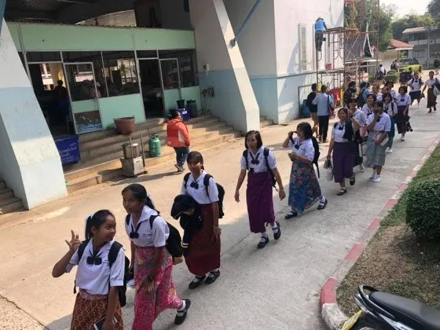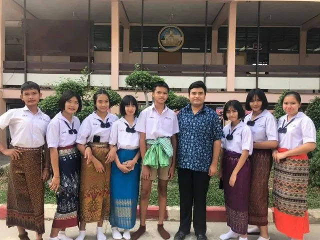 นักเรียนพร้อมใจนุ่งซิ่น ผ้าขาวม้าคาดเอว