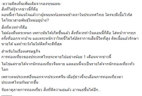 เพราะคนประเทศอื่นนอกจากประเทศจีน เมื่อรู้ข่าวนี้จะเลื่อนการท่องเที่ยวมาประเทศไทยกันมากขึ้น