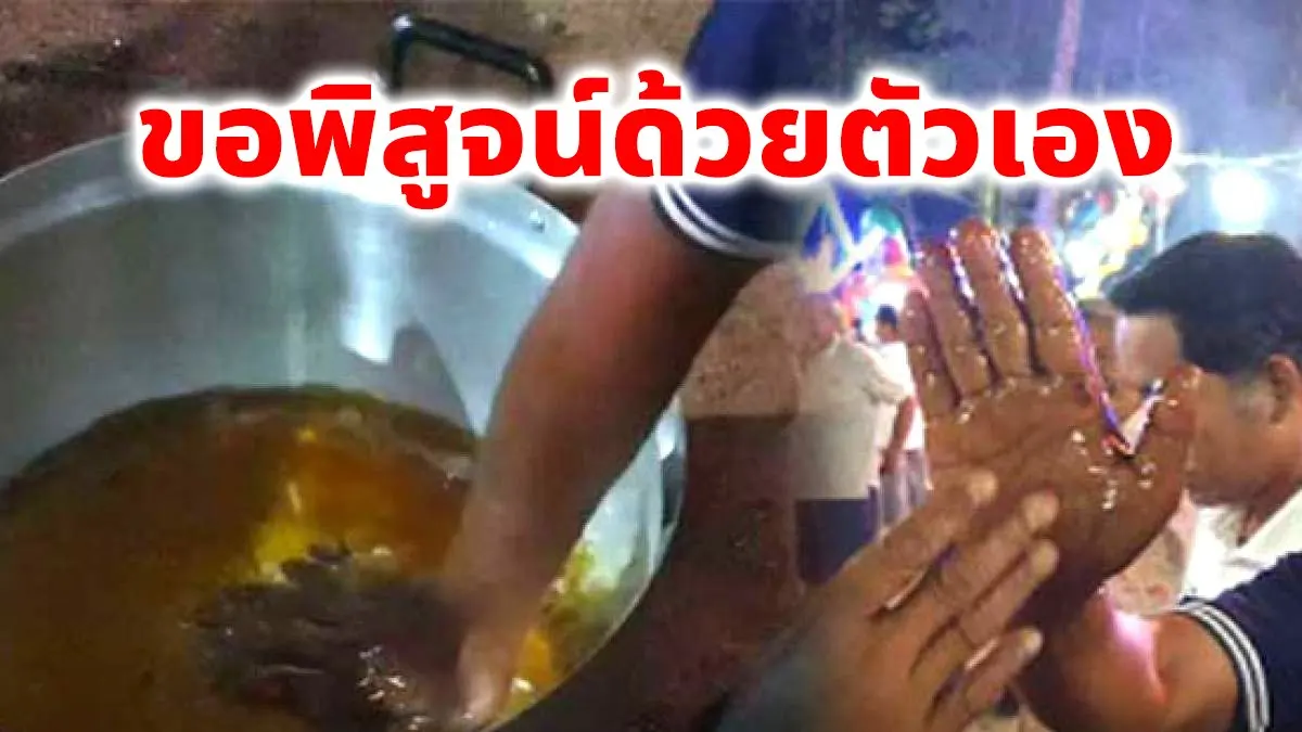 ชาวบ้านตะลึง หนุ่มใหญ่เจ้าหน้าที่วัด เอามือจุ่มน้ำมันร้อนๆ ขอลองพิสูจน์ด้วยตัวเอง