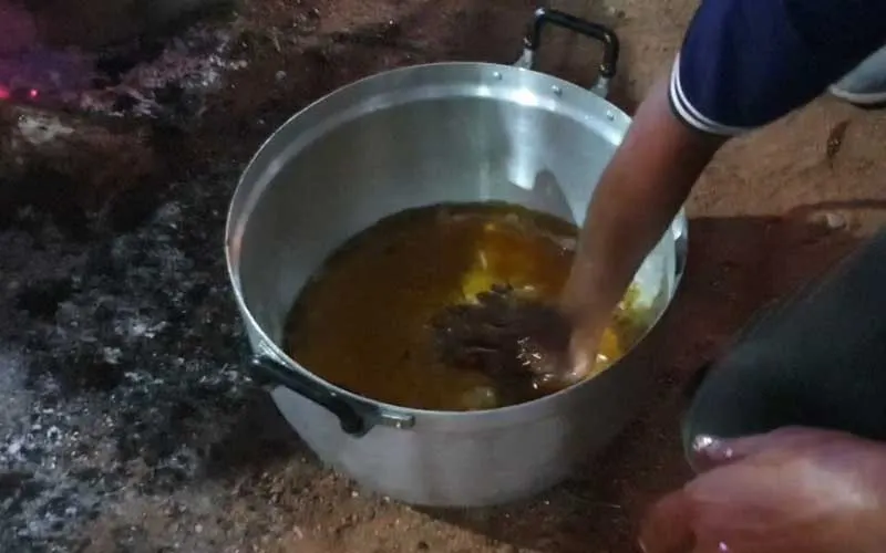 ทั้งนี้มีพ่อค้ารายหนึ่ง ที่ได้มาร่วมพิธี เผยว่า ตอนแรกตนไม่เชื่อเพราะนายสมบัติ อาจจะเตรียมการ มีวิธีกลลวงเพื่อตบตาชาวบ้านกลางพิธีกวนข้าวมธุปายาส เช่น เอามือแช่ในน้ำแข็งเย็น ๆ เป็นเวลานานก่อนจะเอามือจุ่มลงในหม้อน้ำมัน ตนจึงต้องเสี่ยงพิสูจน์ด้วยตัวเอง ตัดสินใจปิดตาเอามือจุ่มลงไปในหม้อน้ำมันร้อน ๆ รู้สึกว่ามันร้อนมากจนทนไม่ไหวต้องรีบชักมือกลับ แต่น่าแปลกคือ ทันทีที่ดึงมือพ้นหม้อน้ำมัน พบว่าความร้อนเริ่มลดลงและมือค่อยๆเย็นลง ไม่มีเเผลพุพองแม้แต่น้อย
