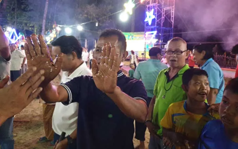 ซึ่งบรรยากาศมีประชาชนเดินทางมาร่วมพิธีและร่วมกวนข้าวมธุปายาสเป็นจำนวนมาก เพื่อความเป็นสิริมงคล โดยข้าวมธุปายาสในกระทะจะบีบคั้นเอาน้ำมันออกมาในกระทะจำนวนมาก ซึ่งปกติเเล้วจะต้องรอให้น้ำมันเย็นลง เเล้วใช้จวักหรือ ช้อนขนาดใหญ่ ตักนำไปบรรจุขวดพลาสติกแจกจ่ายให้ประชาชนที่มาร่วมงาน โดยมีนายสมบัติ สัตย์ชัย เจ้าหน้าที่วัด ได้สร้างความตื่นตะลึงให้กับผู้คน เมื่อ ใช้มือจุ่มลงในหม้อน้ำมนต์ร้อนๆ ที่ตักขึ้นมาจากกระทะ