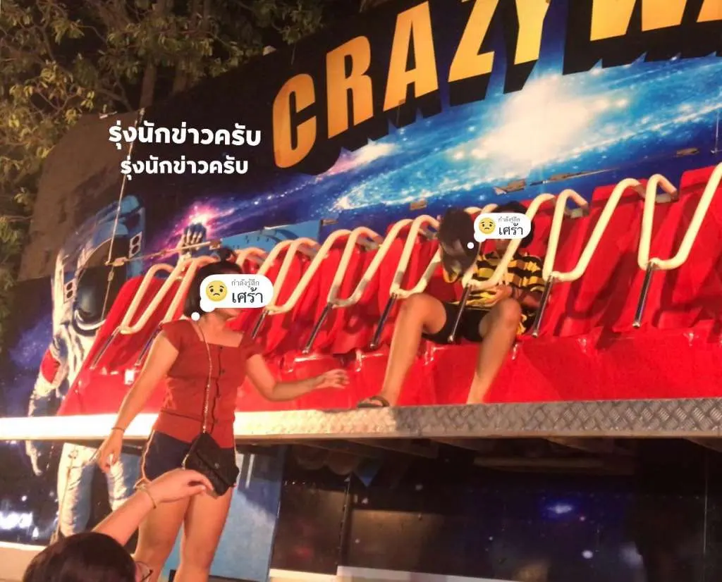 จากการสอบถามหญิงสาวที่ติดกับเครื่องเล่น กล่าวว่า ช่วงแรกที่เล่นนั้นนั่งกันครบทุกที่นั่ง พอไฟฟ้าดับทำให้เครื่องติดไม่ทำงานค้างอยู่ข้างบนนานประมาณเกือบ 1 ชั่วโมงใครที่ตัวเล็กก็พยายามลอดออกมาจากอุปกรณ์นิรภัย และปีนลงมาข้างล่าง ส่วนพวกตนทั้ง 3 คนตัวใหญ่ออกมาไม่ได้ จนกระทั่งมีการช่วยเหลือและนำตัวออกมาได้อย่างปลอดภัย