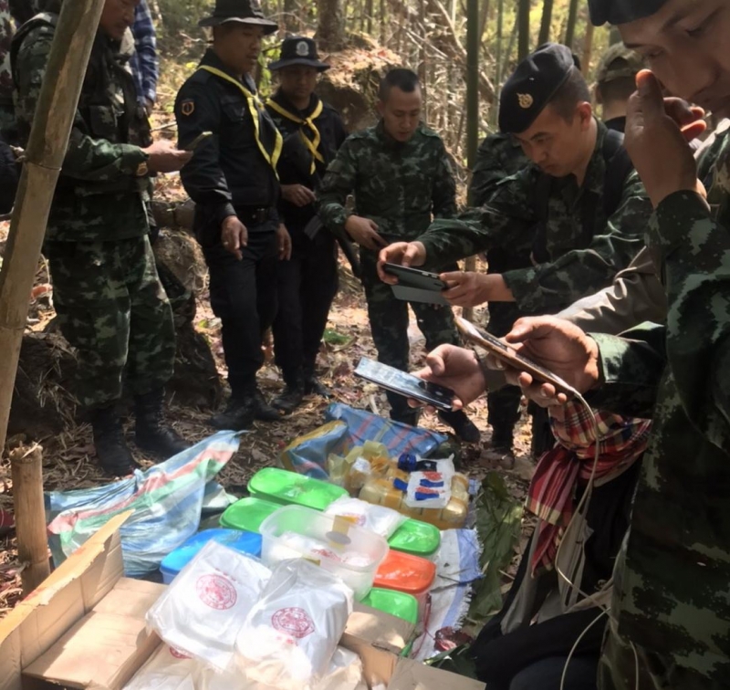 ต่อมา 14 30 น พล ท สุภโชค ธวัชพีระชัย แม่ทัพน้อยที่ 3 ในฐานะรอง ผอ ศูนย์ปฏิบัติการป้องกันและปราบปรามยาเสพติด กองทัพภาคที่ 3 พล ต บุญยืน อินกว่าง ผู้บัญชาการศูนย์ปฏิบัติการบริหารการแก้ไขปัญหายาเสพติดชายแดนภาคเหนือ พร้อมหน่วยงานที่เกี่ยวข้องลงพื้นที่เกิดเหตุ เพื่อตรวจสอบการปฏิบัติงานของหน่วยภายหลังเกิดการปะทะ กลุ่มขบวนการค้ายาเสพติดช่วงเช้าที่ผ่านมาโดยเข้าเคลียร์พื้นที่ปะทะอย่างละเอียด ในเบื้องต้นพบยาเสพติดในกระเป๋าเป้กระจัดกระจายอยู่ทั่วบริเวณจุดปะทะ ตรวจพบยาบ้า จำนวน 29 เป้ จำนวนกว่า 3 ล้านเม็ด เฮโรอีน 5 กระสอบ ประมาณ 32 กิโลกรัม และอาวุธปืนอาก้าของฝ่ายตรงข้ามจำนวน 1 กระบอก