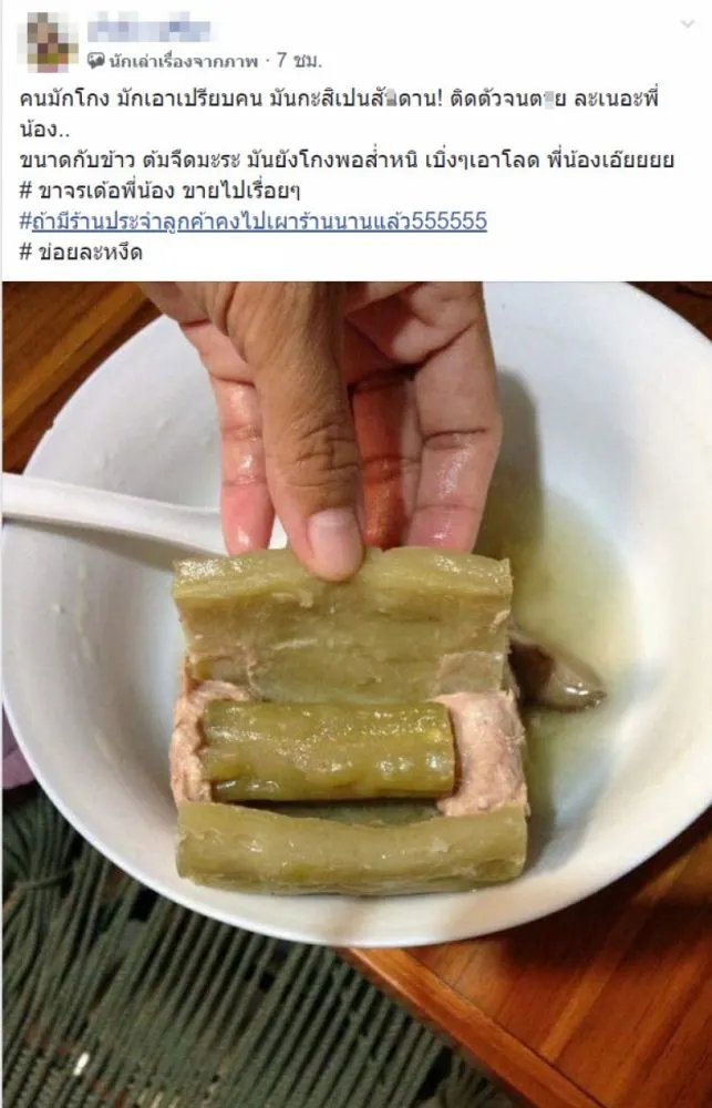 เรียกได้ว่าเป็นเรื่องราวที่มีคนต่างเข้ามาแสดงความคิดเห็นกันเป็นจำนวนมาก สำหรับเรื่องราวที่เธอได้เผยข้อความพร้อรูปภาพระบุว่า คนมักโกง มักเอาเปรียบคน มันกะสิเป็นสัน ติดตัวจน ละเนอะพี่น้อง ขนาดกับข้าว ต้มจืดมะระ มันยังโกงพอส่ำหนิ เบิ่งๆเอาโลด พี่น้องเอ๊ยยยย ขาจรเด้อพี่น้อง ขายไปเรื่อยๆ ถ้ามีร้านประจำลูกค้าคงไปเผาร้านนานแล้ว555555# ข่อยละหงึด
