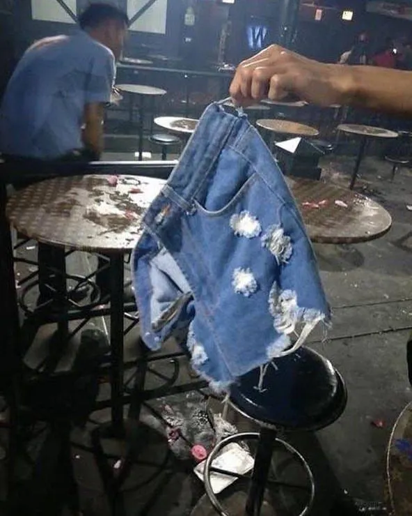 ซึ่งเป็นภาพของกางเกงยีนส์ขาสั้นของลูกค้า ที่ลืมไว้ใต้โต๊ะภายในร้าน จะทำให้เกิดคำถามว่าเจ้าของกางเกงตัวนี้กลับบ้านได้อย่างไร