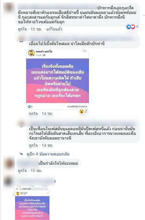จากโพสต์ดังกล่าวทำให้มีชาวเน็ตเข้ามาแสดงความคิดเห็นกันอย่างต่อเนื่อง เพราะเป็นการกระทำต่อผู้หญิงซึ่งได้ชื่อว่าเป็นภรรยาและเป็นแม่ของลูก ซึ่งดูจากสภาพของหญิงสาวสะบักสะบอมและมีร่องรอยฟกช้ำที่เบ้าตาและแผ่นหลัง และมึนงงคล้ายเป็นคนไม่มีสติสัมปชัญญะ พูดจาเหม่อลอยเป็นที่น่าเวทนา แก่ผู้พบเห็นยิ่งนักและยิ่งนำมาโพสต์ในโลกโซเชียล
