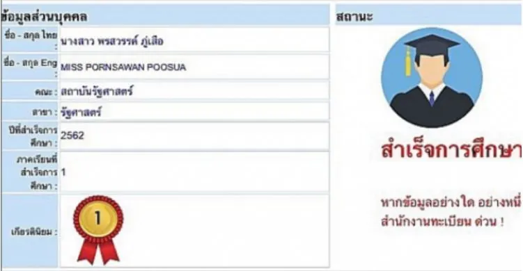 และโดยล่าสุด สาวเอื้อยได้โพสต์รูปความสำเร็จอีกอย่างหนึ่งคือภาพสำเร็จการศึกษา พร้อมข้อความว่า เกียรตินิยมอันดับ1 ที่รอคอย จบแล้วนะคะ 3ปีครึ่ง หายเหนื่อยเลย ต่อไปได้เวลาทำงานจริงจังแล้ว ทำในสิ่งที่เรารักดีกว่าเย้