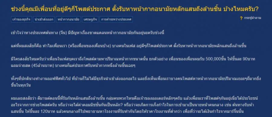 ช่วงนี้คุณมีเพื่อนที่อยู่ดีๆก็โพสต์ประกาศ ตั้งรับหาหน้ากากอนามัยหลักแสนถึงล้านชิ้น บ้างไหมครับ?