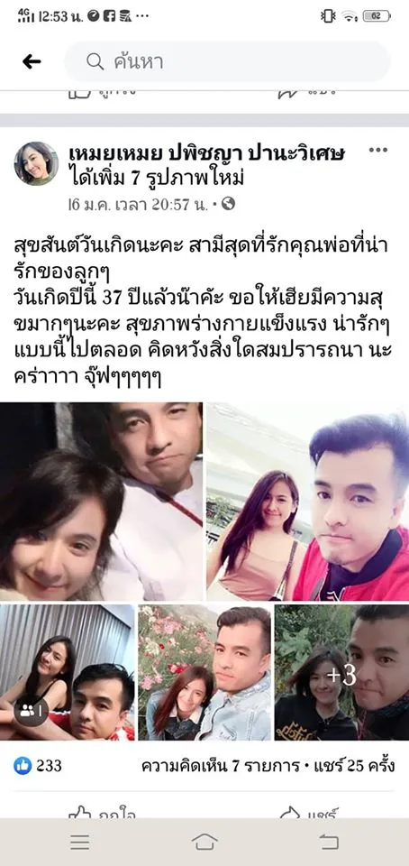 นอกจากนี้ผู้ใช้เฟซบุ๊ก เพลิน เป็นคนเมาเมา ยังได้เผยให้เห็นโฉมหน้าของหนุ่มคนดังกล่าวที่ขึ้นชื่อว่าเป็นสามีของพี่สาวอีกด้วย ซึ่งเธอได้แคปโพสต์ของพี่เขยใจร้ายของเธอ ซึ่งในรูปเป็นโพสต์ของฝ่ายชายที่ได้ลงภาพถ่าย พร้อมกับระบุข้อความว่า “โสดลูกติด ฮิตจะตาย แม่ก็แก่อายุ 80 ปีแล้ว อยากได้คู่ครองที่รับเราได้ในส่วนนี้ ส่วนเงินทองเรามีให้ อนาคตที่ดี ความรักความจริงใจความซื่อสัตย์เรามีให้ อาชีพก็วางมาแล้วแต่คนเก่าดันหนีตามผู้ชายไป ผมอาจจะมองดูเลวร้ายแต่ความจริงผมนิสัยดีและจะปรับปรุงให้ดีมากขึ้น”