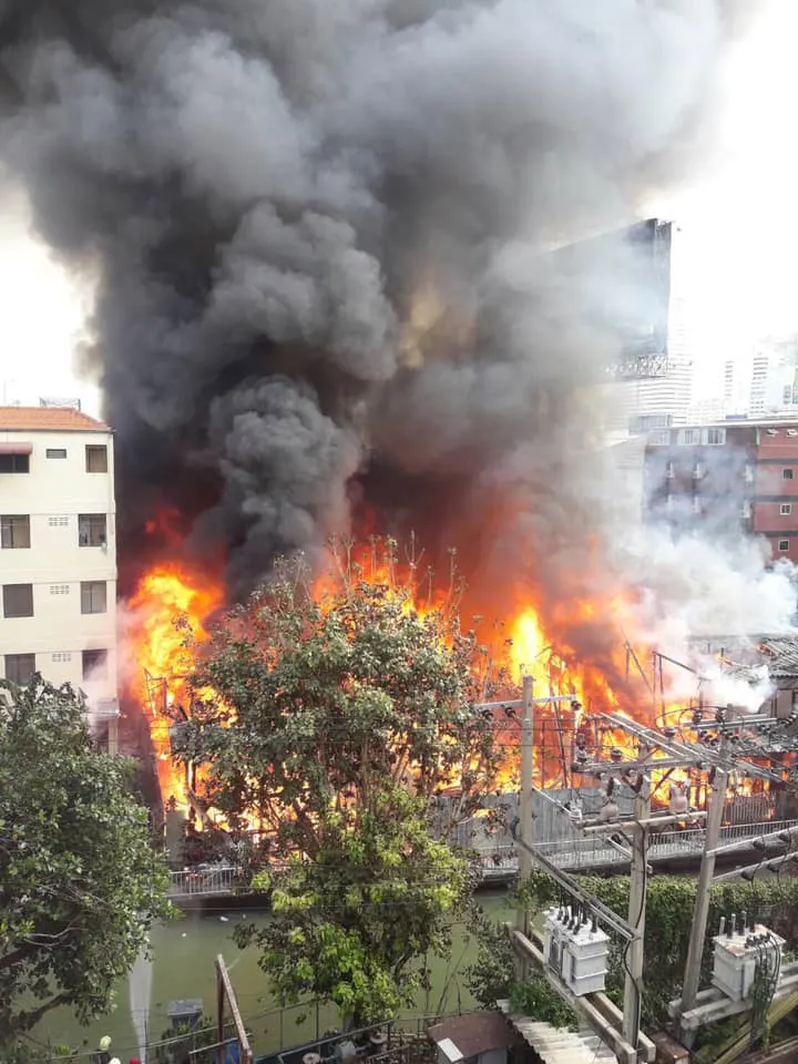 ไฟไหม้ใกล้โรงพยาบาลพระมงกุฏเกล้า หนุ่มฝ่ากองไฟเข้าไปช่วยแมวติดอยู่ในกองไฟ