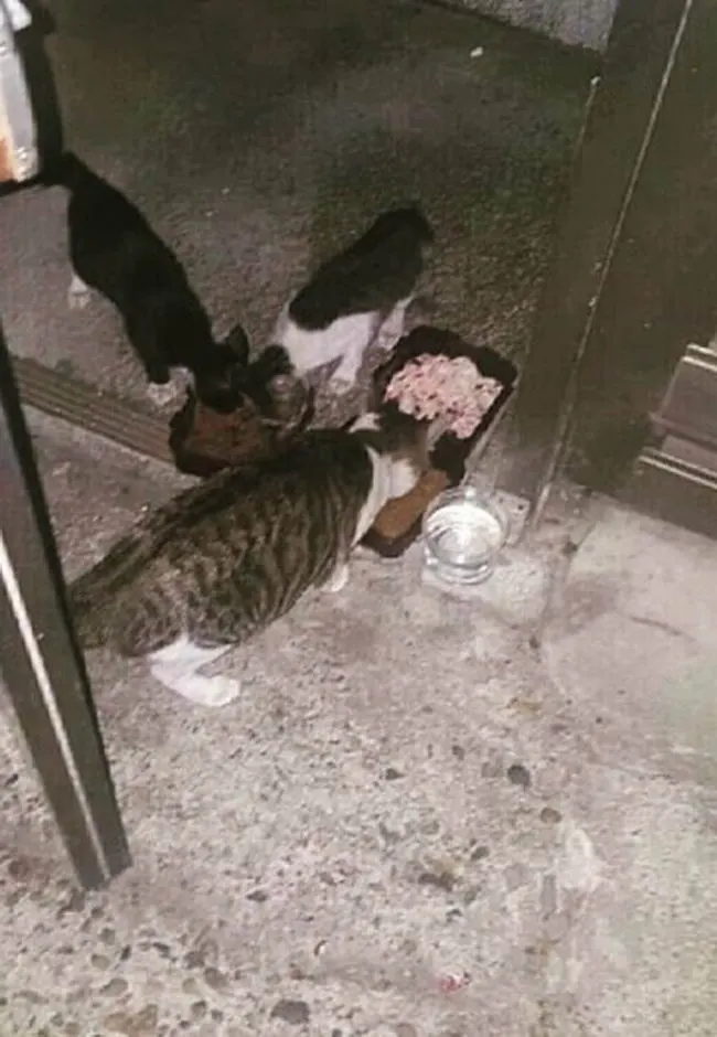 เพื่อความสะดวกและไม่รบกวนแมวจรจัดเหล่านี้ให้เกิดความหวาดระแวง เขาจะน้ำและอาหารเทใส่หลายๆชามให้กับพวกมัน