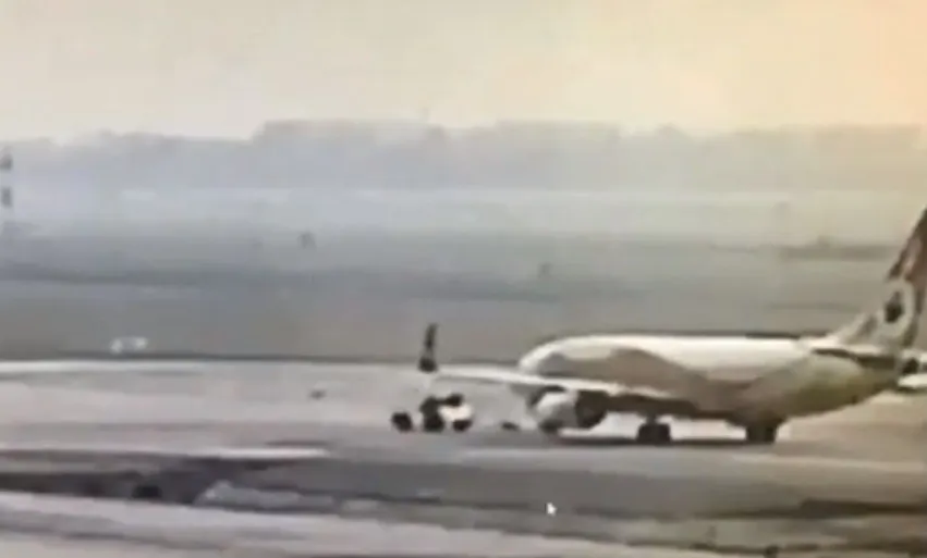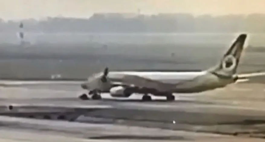 ในระหว่างที่กำลังลาก เจ้าหน้าที่ได้ทำการชะลอที่ทางโค้งของทางขับ S ไปยังประตูเทียบที่ 33 แต่เครื่องบินยังคงวิ่งไปข้างหน้า ทำให้อุปกรณ์เชื่อมต่อระหว่างรถลากกับเครื่องบิน (towbar) ขาด เครื่องบินพุ่งเข้าชนรถลาก ทำให้เจ้าหน้าที่ภาคพื้นสองคนได้รับบาดเจ็บ
