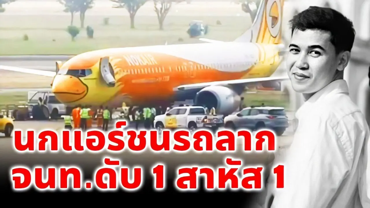 เกิดอุบัติเหตุเครื่องบินของสายการบินนกแอร์ไหลเข้าชนกับรถลาก