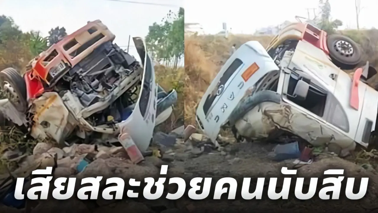 คนขับรถบรรทุกเบรกแตก ยอมหักหลบรถตกเหว เพื่อให้คนนับสิบรอด