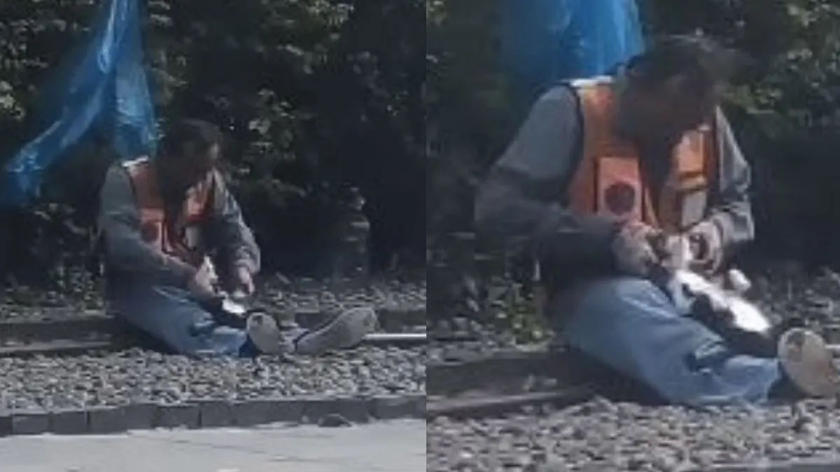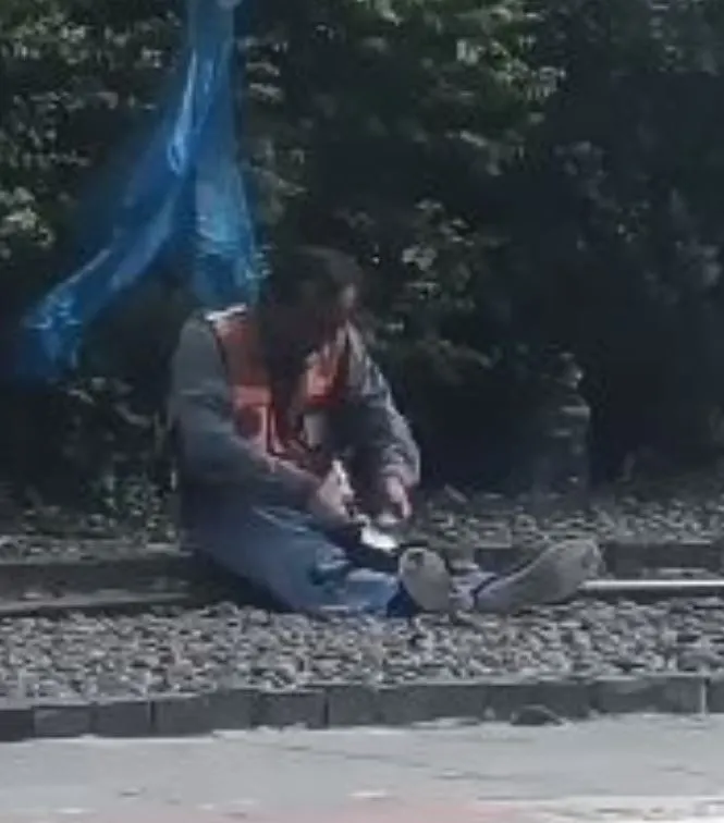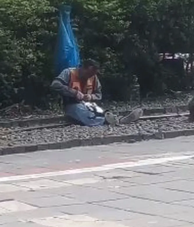 สาวแอบถ่ายวินมอเตอร์ไซค์นั่งก้มๆเงยๆอยู่ข้างถนน