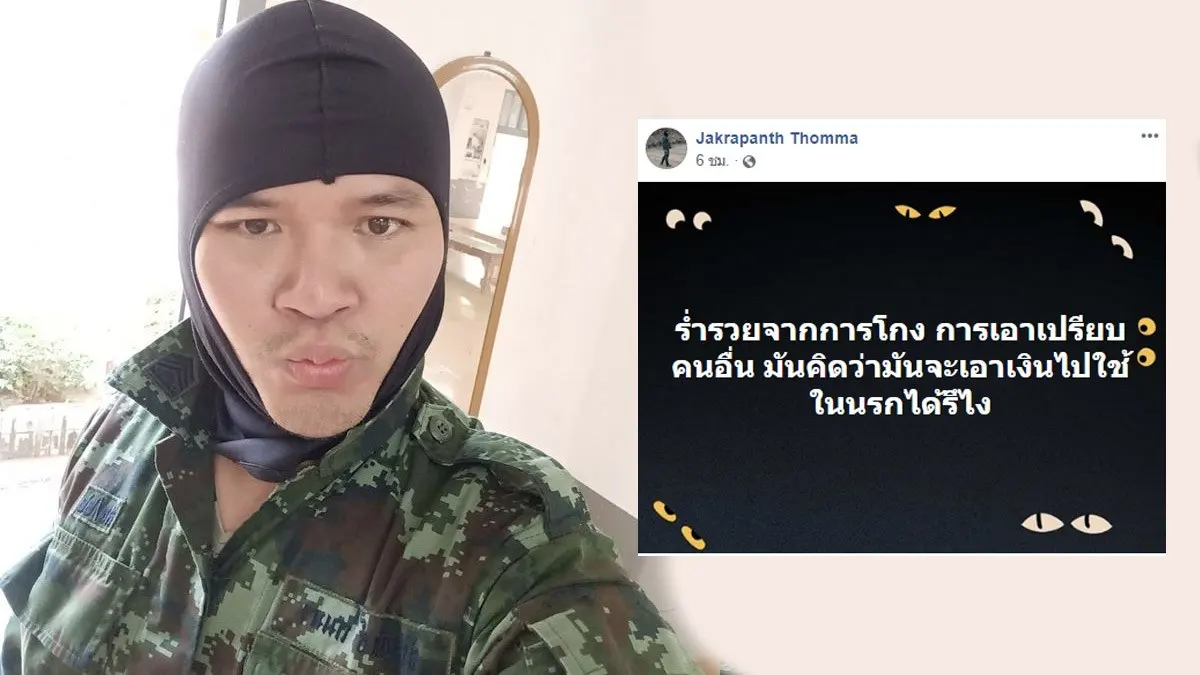 ทั้งนี้เมื่อเข้าไปตรวจสอบในโซเชียลมีเดียพบว่าสิบโทคนนี้มีชื่อว่า สิบโท จักรพันธ์ ถมมา ซึ่งเข้าได้ใช้เฟซบุ๊กชื่อ Jakrapanth Thomma ทั้งยังได้โพะสต์ข้อความสุดท้ายก่อนก่อเหตุลงมืออีกว่า ” ยังไงก็หนีความตายไม่พ้นทุกคน”
