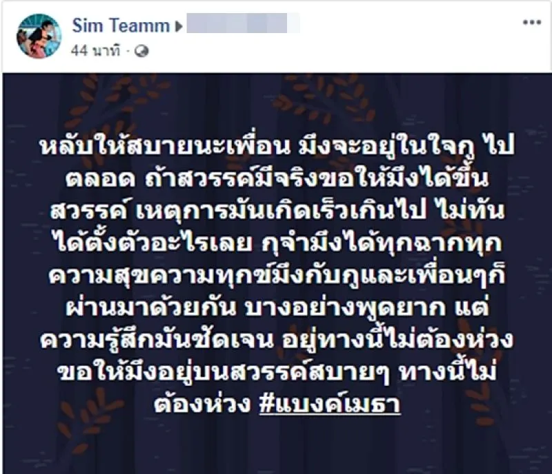 ขณะที่ความเคลื่อนไหวในโลกออนไลน์นั้น ได้มีเพื่อนพลทหารแบงค์ เข้ามาให้แสดงความเสียใจ และอาลัยต่อการจากไปอย่างไม่ทันตั้งตัว