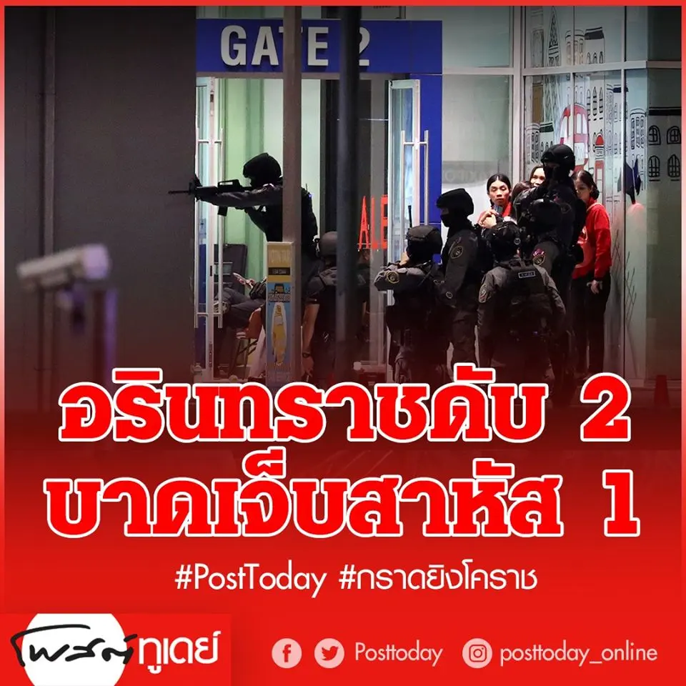 มีเสียงปืนจากการยิงปะทะกันของเจ้าหน้าที่กับ จ.ส.อ..จักรพันธ์ ผู้ก่อเหตุ ส่วนประชาชนผู้ที่ยังติดค้างอยู่ภายในห้าง ได้มีการโพสเฟสบุคเป็นระยะ