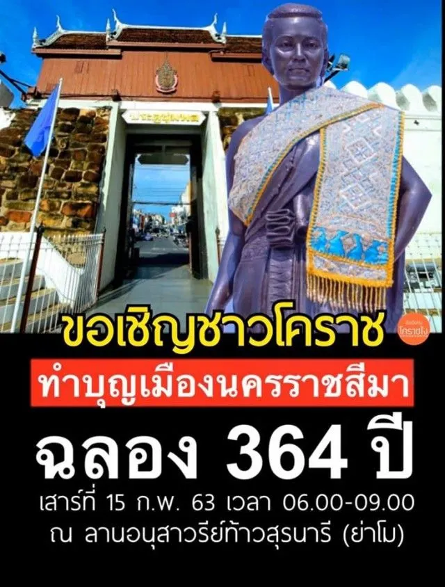 ขอเชิญชาวจังหวัดนครราชสีมา ทำบุญใหญ่ครบรอบ 364 ปี