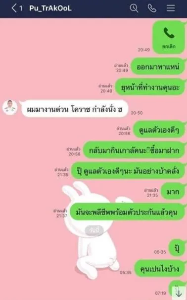 จากนั้แฟนสาวได้ทักแชทไปถามอีกครั้งตอน 05.35 น. และเวลา 07.19 น. แต่ร.ต.อ.ตระกูลไม่ได้ตอบแชทแฟนสาวแล้ว