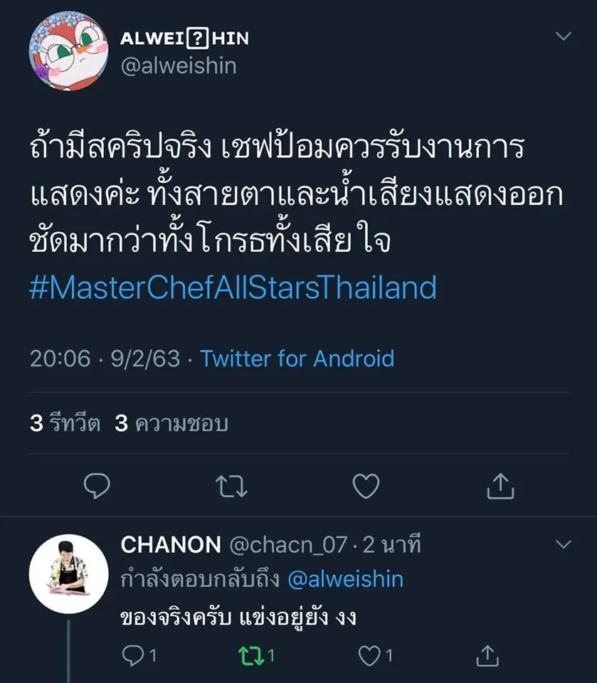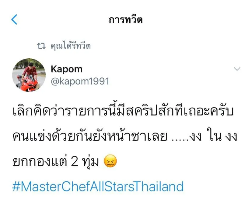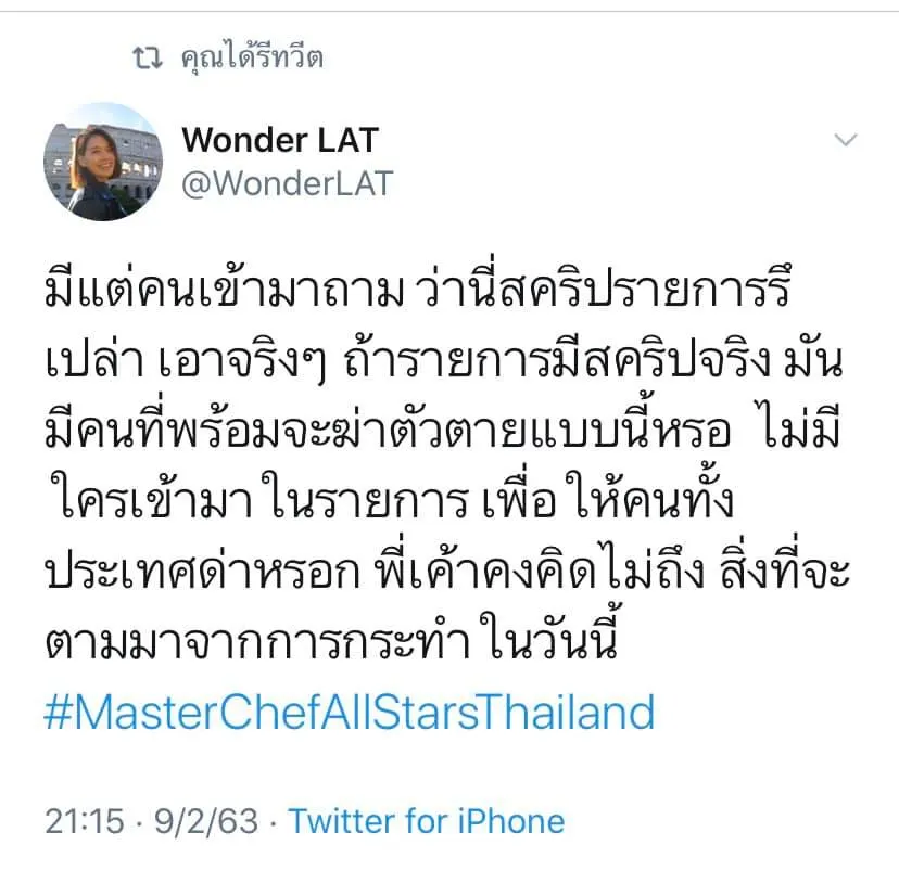 พี่พูดออกมาได้เเค่ว่าทางรายการติดต่อไป เเล้วพี่ปฏิเสธไม่ได้หรอคะ ทางทีมงานจะได้ติดต่อคนอื่นแทน ยังมีอีกหลายคนที่อยากมาแทนพี่เเละอยากจะเเข่งขันในรายการต่อ 😠😠😠😠#MasterChefAllStarsThailand pic.twitter.com/MGbuW3Xt4K