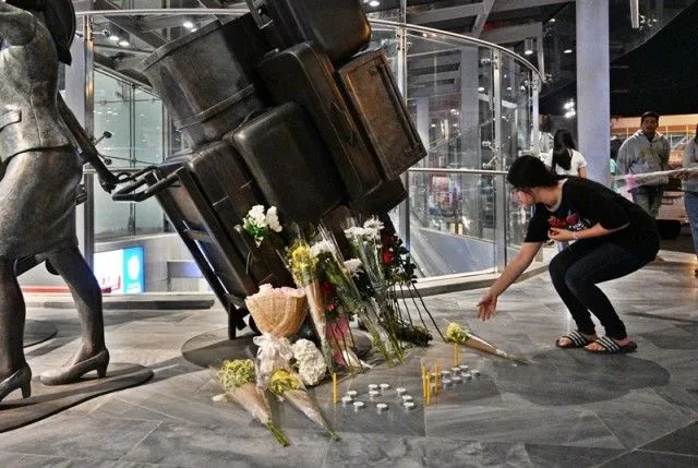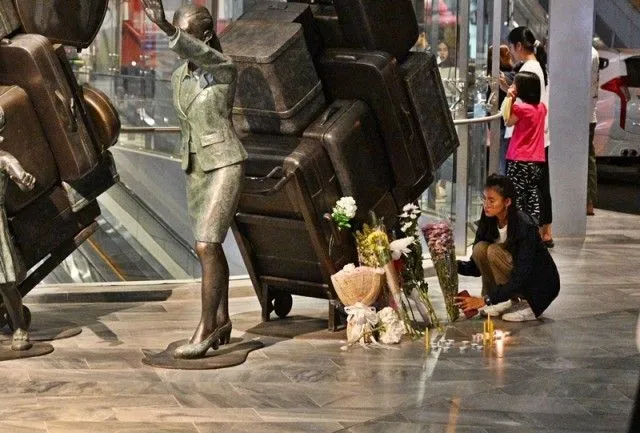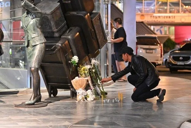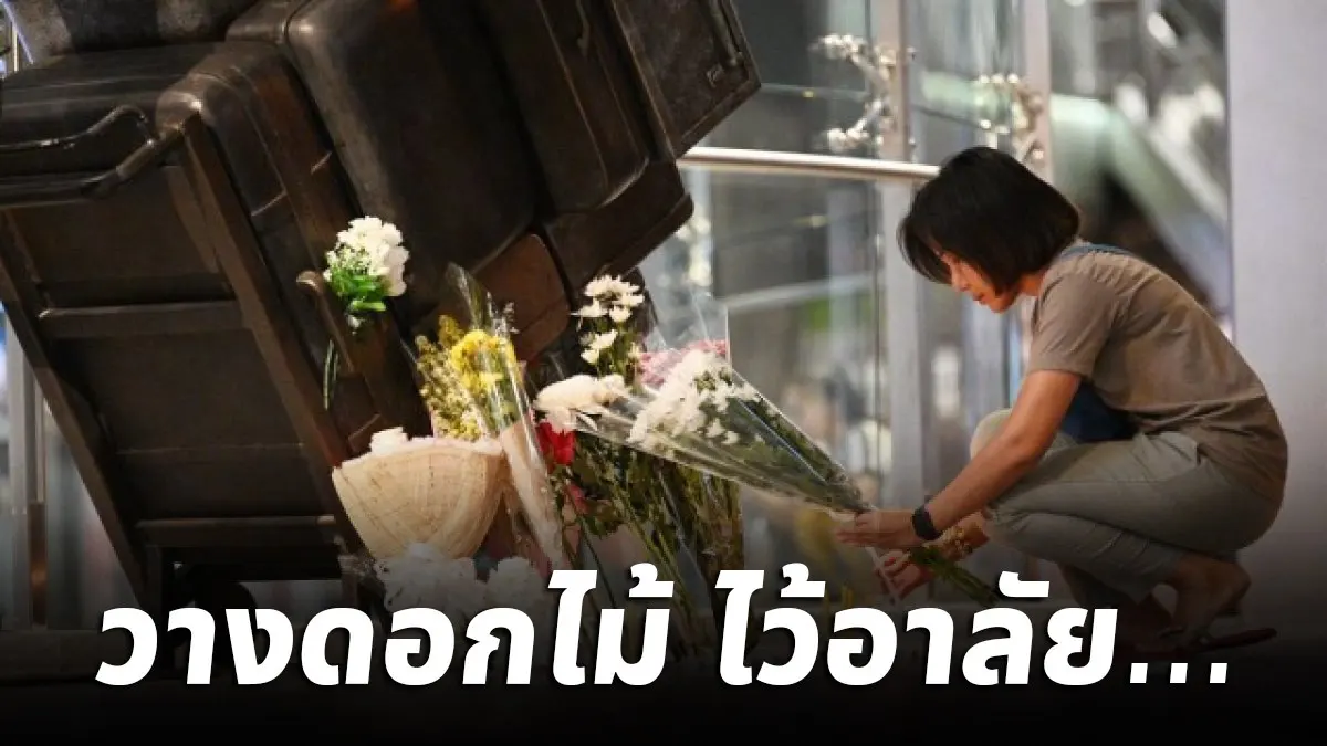 ภาพประชาชนร่วมวางดอกไม้ไว้บริเวณหน้าห้างสรรพสินค้า GATE 1