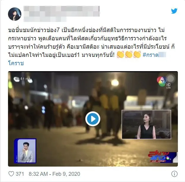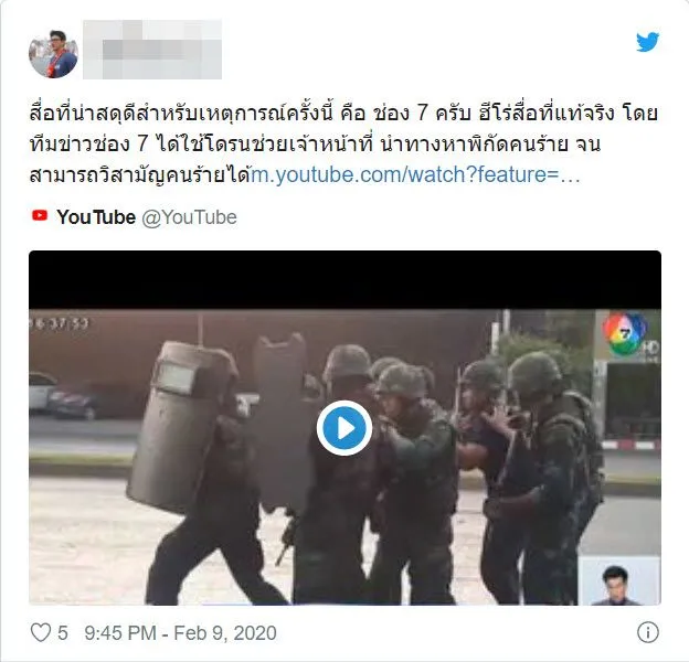 โชเซี่ยลแห่ชื่นชมทีมข่าวช่อง7 ร่วมปฏิบัติการกับเจ้าหน้าที่ส่งโดรนช่วยค้นหาจ่าคลั่งจนเจอ โดย วันที่ 9 ม.ค. รายการเจาะประเด็นข่าวค่ำ ทางสถานีโทรทัศน์ช่อง 7 เอชดี