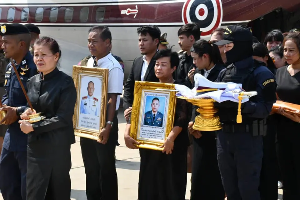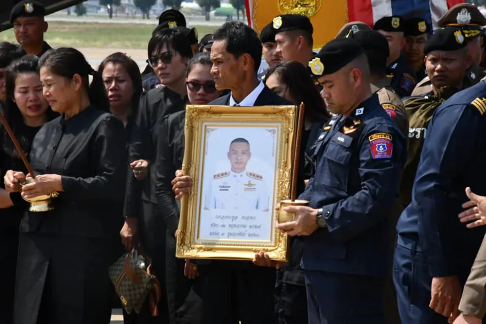 สุดเศร้า! ครอบครัว และ ผองเพิ่อน ของ 2 ตำรวจกล้า ร่วมรับร่าง ของ ร.ต.อ.ตระกูล ทาอาษา ผบ.หมวด (สบ 1) กองร้อยปฏิบัติการพิเศษที่ 2 กก.ต่อต้านการก่อการร้าย บก.สปพ.และ ด.ต.เพชรรัตน์ กำจัดภัย สังกัดอรินทราช 26 ที่ กองบิน6 ดอนเมือง
