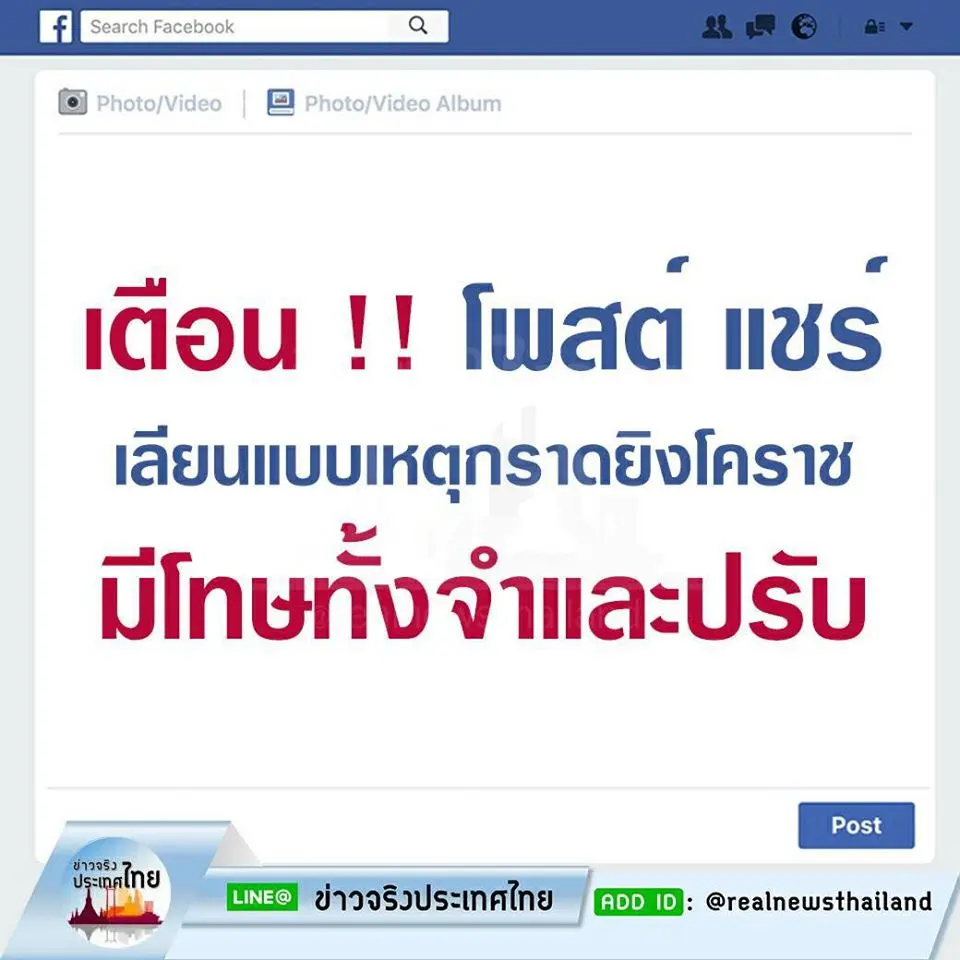 เตือน ‼️ การโพสต์ แชร์ เลียนแบบเหตุกราดยิงโคราช มีโทษทั้งจำและปรับ