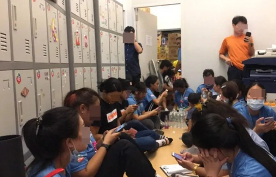 วันเสาร์ที่ผ่านมา จำนวนที่มีก็ไม่ได้เยอะมาก เด็กประมาณ 30-40 คน ผู้ปกครองรวมๆ กันแล้วน่าจะประมาณ 100 คนได้ และมีพนักงานของฮาร์เบอร์แลนด์ประมาณ 43 คน ที่มาวันนั้น ก็เยอะเหมือนกัน เราแบ่งให้ผู้ปกครองกับน้องๆ แบ่งไปอยู่ในส่วนของห้อง 4 ห้อง จะมีบางส่วนที่เล่นเลเซอร์บนชั้น 2 เขาก็อยู่ในห้องเลเซอร์เลย เราปิดล็อก เพราะมันเป็นประตูอัตโนมัติ บางส่วนอยู่ห้องสต๊อก อีกเซตหนึ่งก็คือเป็นห้องที่เก็บเครื่องดื่ม ขนม ที่เราไว้ในฮาร์เบอร์แลนด์ และบางส่วนหลบอยู่ในห้องพยาบาล หลบอยู่ในห้องสต๊อกขายของที่เป็นถุงเท้า