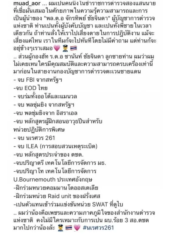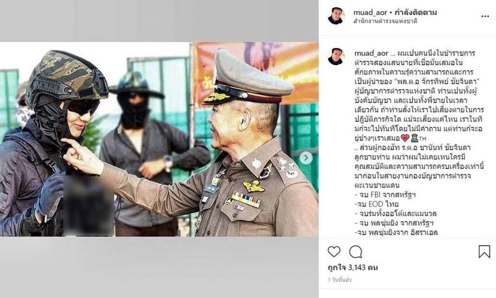 ล่าสุดทางด้าน หมวดอ๋อ หรือ พ.ต.ท.รณกร รัตนะพร อดีตแฟนเก่าของ แอฟ ทักษอร ภักดิ์สุขเจริญ ได้ออกมาโพสต์ข้อความในฐานะของตำรวจถึงการทำงานของ บิ๊กแป๊ะ หรือ พล.ต.อ.จักรทิพย์ ชัยจินดา ระบุข้อความว่า