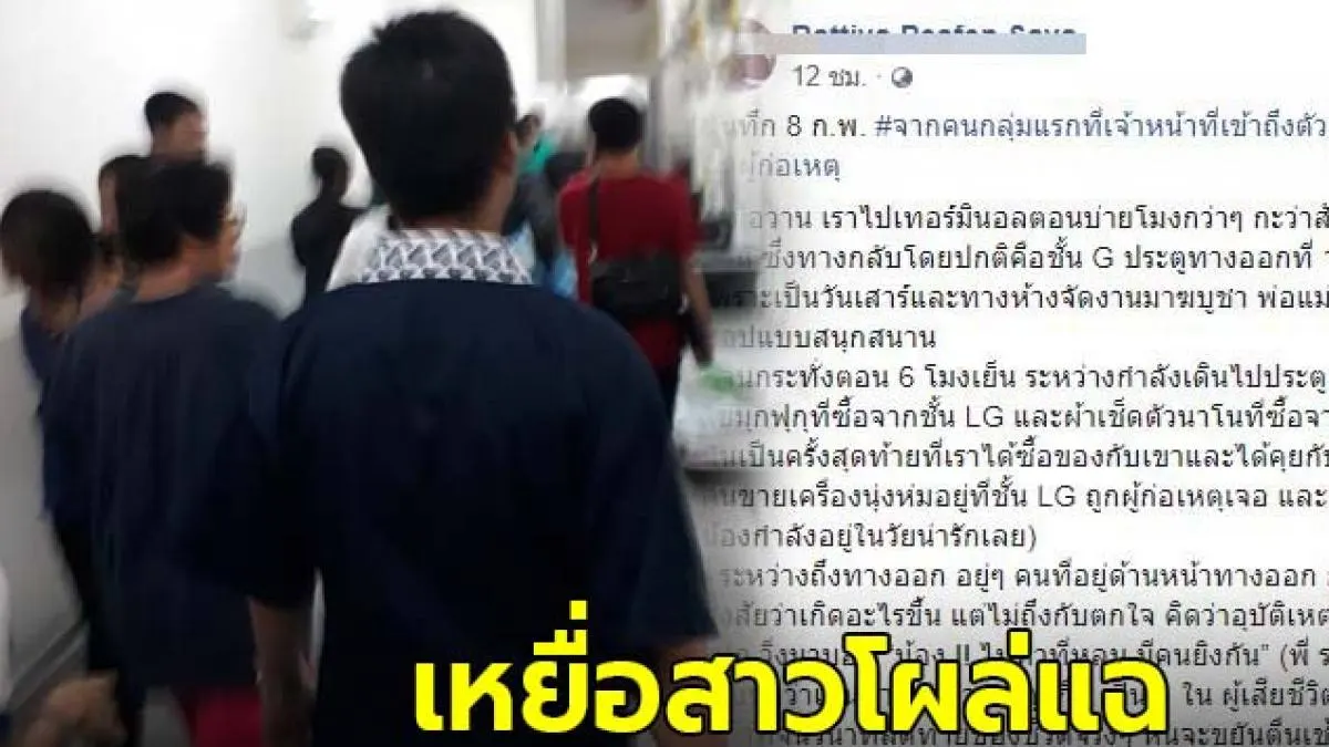 จนกระทั่ง น้องพนักงานเล่นโซเชียลแล้วเอาข่าวมาให้ดู (ชิบหายมาก มันไม่ใช่เรื่องทะเลาะแล้วยิงกัน แต่ผู้ก่อเหตุตั้งใจจะมาฆ่าทุกคนที่เจอในห้าง ตอนนั้นรู้เลยว่า ชีวิตเราไม่ปลอดภัยแล้ว จากที่แพลนไว้ว่าจะตายตอนอายุ 60 – 70 ปีท่ามกลางลูกๆหลานๆ ตอนนี้ต้องมาแพลนว่าจะทำยังไงถึงจะมีรอดชีวิตในวันนี้ไปให้ได้)