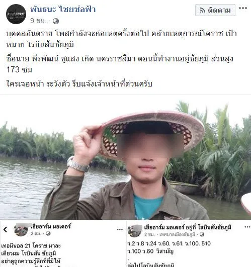 จากเรื่องดังกล่าวได้มีเกรียนไม่สนโลก ได้โพสต์ข้อความที่ไม่ควรอย่างยิ่ง โดยเจ้าของเฟซบุ๊ก พันธนะ ไชยช่อฟ้า ได้แจ้งเตือนภัยเอาไว้ว่า “บุคคลอันตราย โพสต์กำลังจะก่อเหตุครั้งต่อไป คล้ายเหตุการณ์โคราช เป้าหมาย โรบินสันชัยภูมิ ชื่อนาย พีรพัฒน์ ชูแสง เกิด นครราชสีมา ตอนนี้ทำงานอยู่ชัยภูมิ ส่วนสูง 173 ซม. ใครเจอหน้า ระวังตัว รีบแจ้งเจ้าหน้าที่ด่วนครับ”